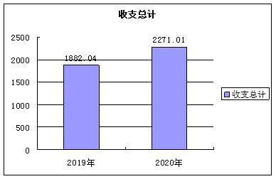 2020年度收、支总计2271.01万元。与2019年相比,收、支总计各增加388.97万元,增长20.67%。主要变动原因是2020年增加扫黑除恶经费支出以及东河法庭新建项目支出。