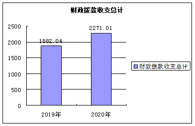 2020年财政拨款收、支总计2271.01万元。与2019年相比,财政拨款收、支总计各增388.97万元,增长20.67%。主要变动原因是2020年增加扫黑除恶经费支出以及东河法庭新建项目支出。