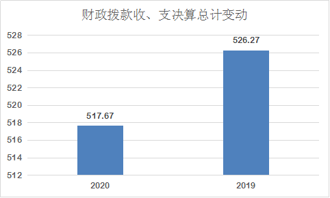 2020年财政拨款收、支总计517.67万元。与2019年相比,财政拨款收总计526.27万元减少11.6万元,下降1.63%。2020年有减少退休人员和调出人员。