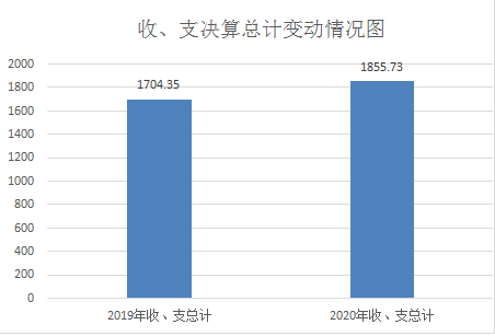 2020年度收、支总计1855.73万元。与2019年相比,收、支总计各增加151.38万元,增长8.88%。主要变动原因是大型项目收支的增加及人员增加。