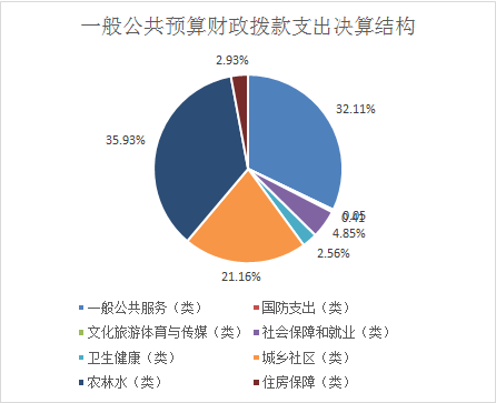 2020年一般公共预算财政拨款支出1444.01万元,主要用于以下方面:一般公共服务(类)支出463.65万元,占32.11%;国防支出(类)支出0.8万元,占0.05%;文化旅游体育与传媒(类)支出5.88万元,占0.41%;社会保障和就业(类)支出69.98万元,占4.85%;卫生健康(类)支出36.92万元,占2.56%;城乡社区(类)支出305.57万元,占21.16%;农林水(类)支出518.85万元,占35.93%;住房保障(类)支出42.35万元,占2.93%。