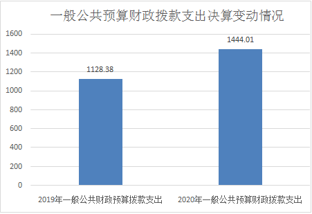 2020年一般公共预算财政拨款支出1444.01万元,占本年支出合计的100%。与2019年相比,一般公共预算财政拨款增加315.63万元,增加27.97%。主要变动原因是大型项目支出及人员增加。
