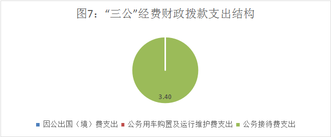 2020年“三公”经费财政拨款支出决算中,因公出国(境)费支出决算0万元,占0%;公务用车购置及运行维护费支出决算0万元,占0%;公务接待费支出决算3.40万元,占100%。具体情况如下: