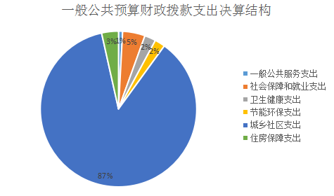 2020年一般公共预算财政拨款支出1,253.53万元,主要用于以下方面:一般公共服务(类)支出10.62万元,占0.85%;节能环保支出(类)26.94万元,占2.15%;城乡社区支出(类)支出1084.98万元,占86.55%;社会保障和就业(类)支出58.2万元,占4.64%;卫生健康支出29.24万元,占2.33%;住房保障支出43.56万元,占3.47%。