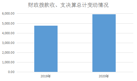 2020年财政拨款收、支总计5,936.88万元。与2019年相比,财政拨款收、支总计各增加1163.84万元,增长24.38%。主要变动原因是主要是增加了旺财投追[2020]098号文件下达2750万专项指标用于旺苍县城市污水处理厂改扩建项目。