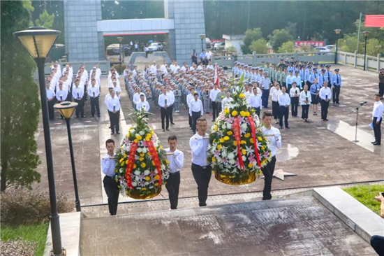 烈士陵园松柏青翠,纪念碑巍然屹立,200余名各界代表,面向纪念牌整齐列队,现场庄严肃穆。