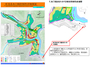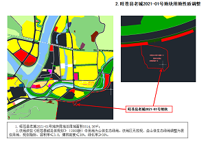1.旺苍县凤凰梁2021-01号地块由商业用地、绿化用地调整为居住用地。经济技术指标为:用地面积7823.31㎡、容积率≤3.0、建筑密度≤30%、绿化率≥30%;