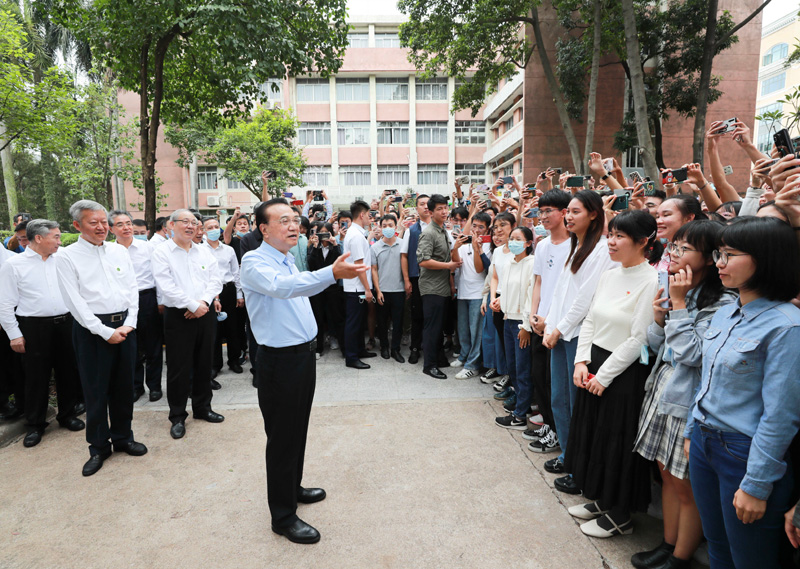 10月13日至15日,在出席第130届广交会期间,中共中央政治局常委、国务院总理李克强在佛山、广州考察。这是10月15日,李克强在中山大学与师生交流。新华社记者 庞兴雷 摄