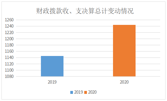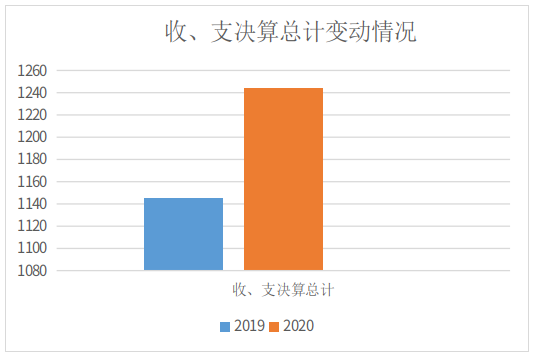 2020年度收、支总计分别为1244.65万元,与2019年相比,收、支增加98.6万元,增加7.9%。主要增加原因是本年职工绩效奖金纳入了预决算。
