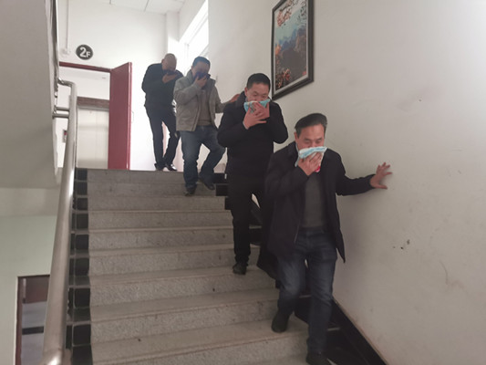 会后,该馆模拟办公区因未熄灭烟蒂引发火情为背景,随着消防警报声响,先后组织开展了报警、应急疏散、灭火等内容演练。演练中,全馆人员及办事群众分楼层,从主楼梯和东西两个消防通道按照弯腰、扶墙、捂口鼻的方式安全有序撤离,演练取得圆满成功。