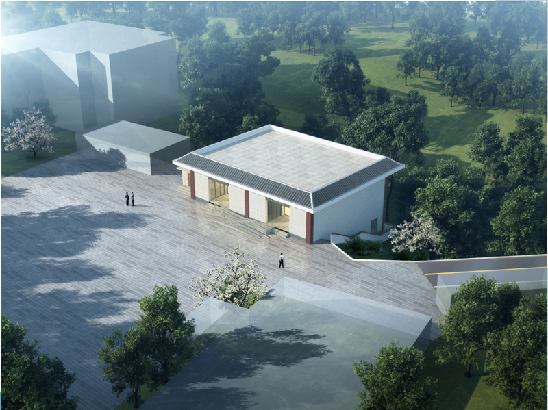 项目用地位于旺苍县松米山公墓内,拟建位置现状为殡仪馆废弃焚烧塔,一侧为殡仪馆内院,一侧临陡坡。为适应殡仪馆规模发展需要,拟将现状废弃焚烧塔拆除后,新建一栋包含两个悼念堂及部分骨灰存放空间的综合功能建筑。根据现状地形地貌,悼念堂设置于地上一层,骨灰存放室设置于半地下室,以减小土石方填挖工程量,节约造价。