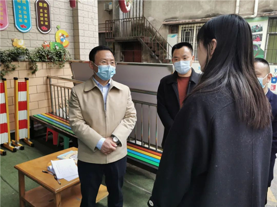 在家乐幼儿园,唐文辉实地查看了校门门禁、测温、值班值守等情况,并通过现场提问等方式听取了校园疫情防控工作汇报。他强调,要常态化落实戴口罩、勤洗手、常消毒、一米线等防疫措施,强化家校联动,完善学生家庭情况信息档案,引导家长及学生提高防疫意识,不聚集、不前往中高风险地区,加强科学精准防控,增强师生自身健康防护能力。