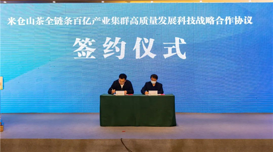 开幕式现场进行了米仓山茶全链条百亿产业集群高质量发展科技战略合作协议和茶产业发展战略合作协议签约仪式,并举行了“特色黄茶之乡”授牌仪式。