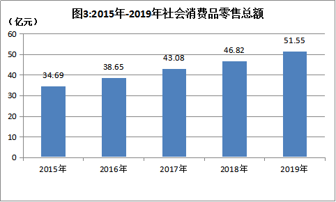 全年实现社会消费品零售总额51.55亿元,比上年增长10.1%。