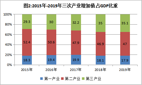 第一、二、三产业的结构比由上年的18.1:46.9:35调整为17.9:47:35.1,第二产业和第三产业比重比上年提高了0.1个百分点,第一产业比重下降0.2个百分点。