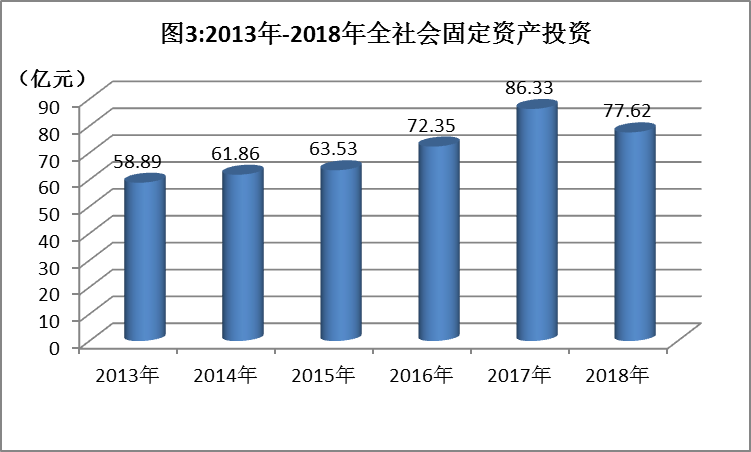 全年实现全社会固定资产投资77.62亿元,同口径增长19.1%,其中:固定资产投资74.42亿元,增长22.8%。