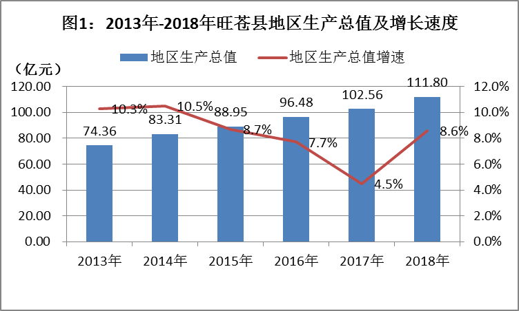2018年全县地区生产总值(GDP)达到111.8亿元,按可比价计算,比上年增长8.6%。其中:第一产业增加值17.72亿元,增长3.7%;第二产业增加值59.31亿元, 增长10.0%;第三产业增加值34.77亿元,增长8.8%。三次产业对经济增长的贡献率分别为6.9%、62.9%、30.2%,分别拉动经济增长0.6、5.4、2.6个百分点。