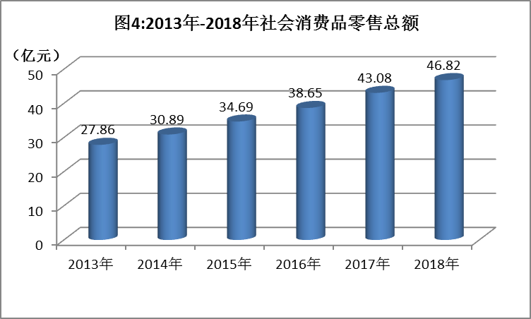 全年实现社会消费品零售总额46.82亿元,比上年增长11.5%。
