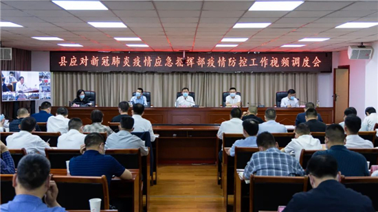 5月19日,省、市应对新冠肺炎疫情应急指挥部疫情防控工作视频调度会议结束后,我县赓即召开县委应对新冠肺炎疫情工作领导小组第55次会议,迅速传达省、市相关会议精神,研究贯彻落实意见。县委书记、县委应对新型冠状病毒肺炎疫情工作领导小组组长唐文辉主持会议并讲话。他强调,全县上下要坚决克服麻痹思想、侥幸心理、厌战情绪和松劲心态,着力补短板、强弱项,从严从紧、精准细致抓好防控措施落实,牢牢把握疫情防控工作主动权,持续巩固来之不易的疫情防控成果。县委副书记、县长杜非出席会议。