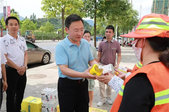 连日来,旺苍持续晴热高温。7月12日中午,县委书记唐文辉带队前往县中医院、新华街交警执勤点、建筑工地、马家梁社区、兴旺大道等地开展送清凉活动,为户外作业的环卫工人、交警、建筑工人、防疫人员送去了凉茶、藿香正气液等夏日消暑慰问品,向坚守在高温一线、默默奉献的广大劳动者致以崇高的敬意。