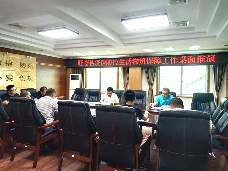 8月12日,旺苍县生活物资保障组桌面推演在县商务局三楼会议室举行。