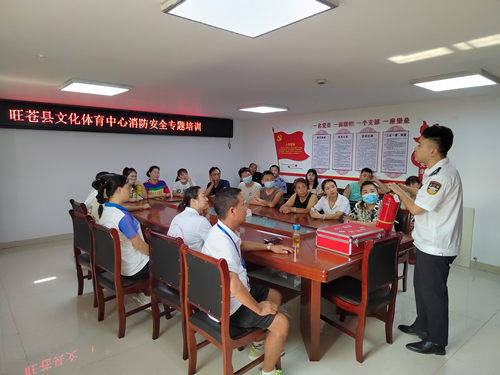 8月11日上午,旺苍县文化体育中心举办了以“珍爱生命,远离火灾”为主题的夏季消防安全知识培训。本次培训邀请广元市消防安全服务中心对我县文体中心内干部职工、物业公司、游泳馆、拳击馆等人员开展了消防安全培训。