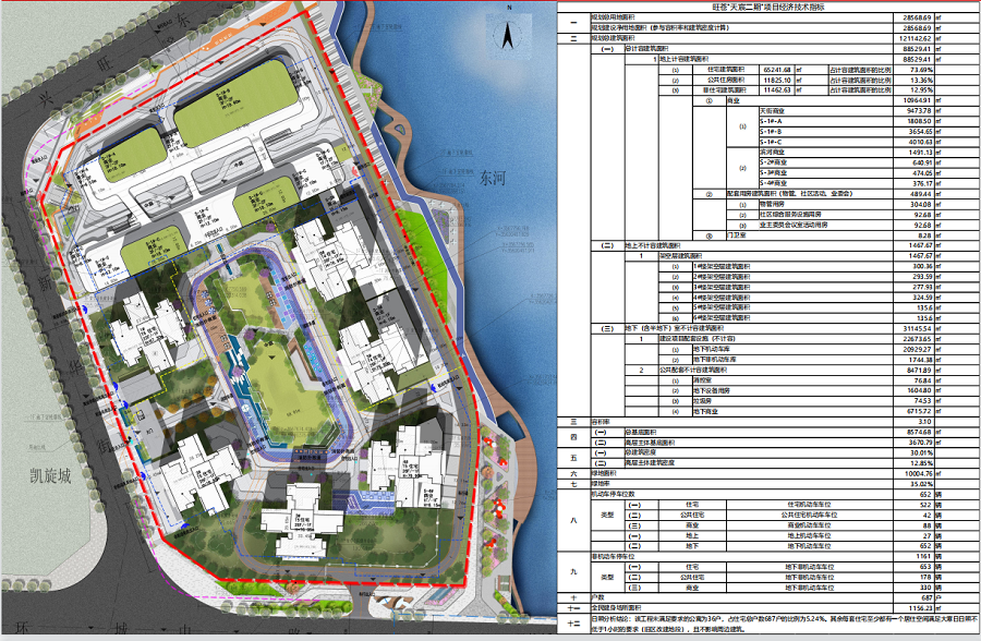 该项目位于旺苍县新桥片区,环城中路以南、东、南面紧靠东河,西南侧为凯旋城和栖岛家园小区,占地面积28568.69㎡(约42.85亩)。2021年11月27日,县政府十九届第四次常务会议批准同意了旺苍县新桥滨江片区IVG-3-1地块项目规划及建筑设计方案。2022年7月20日,圆融置地(旺苍)有限公司向县政府申请对金科天宸项目二期商业综合体设计方案进行优化调整。调整方案已经县规委会审批通过,现将调整方案予以公示。
