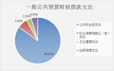 2021年一般公共预算财政拨款支出1,008.97万元,主要用于以下方面:一般公共安全(类)支出856.25万元,占84.87%;社会保障和就业(类)支出71.11万元,占7.05%;卫生健康支出(类)35.80万元,占3.55%;住房保障支出(类)45.81万元,占4.54%。