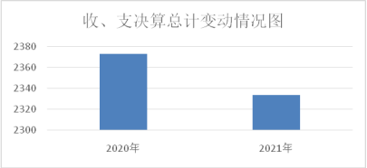 2021年度收、支总计2333.9万元。与2020年相比,收、支总计各减少39.24万元,下降1.65%。主要变动原因是人员减少。