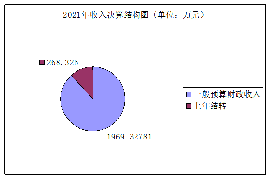2021年本年收入合计2237.65281万元,其中:一般公共预算财政拨款收入1969.32781万元,占88%;年初结转结余268.325万元,占12%。