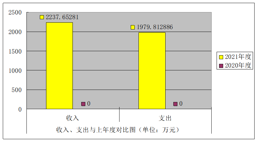 2021年度收入总计2237.65281万元、支出总计1979.812886万元。与2020年相比,因是机构改革,2020年本单位收入、支出全部纳入交通运输局决算,我单位未单独办理决算。