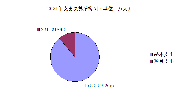 2021年本年支出合计1979.812886万元,其中:基本支出1758.593966万元,占88.83%;项目支出221.21892万元,占11.17%。