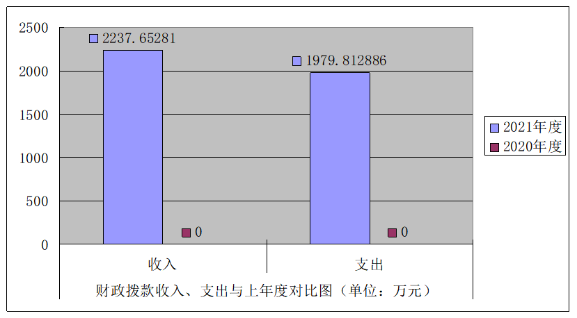2021年财政拨款收入总计2237.65281万元、支出总计1979.812886万元。与2020年相比,因是机构改革,2020年本单位收入、支出全部纳入交通运输局决算,我单位未单独办理决算。