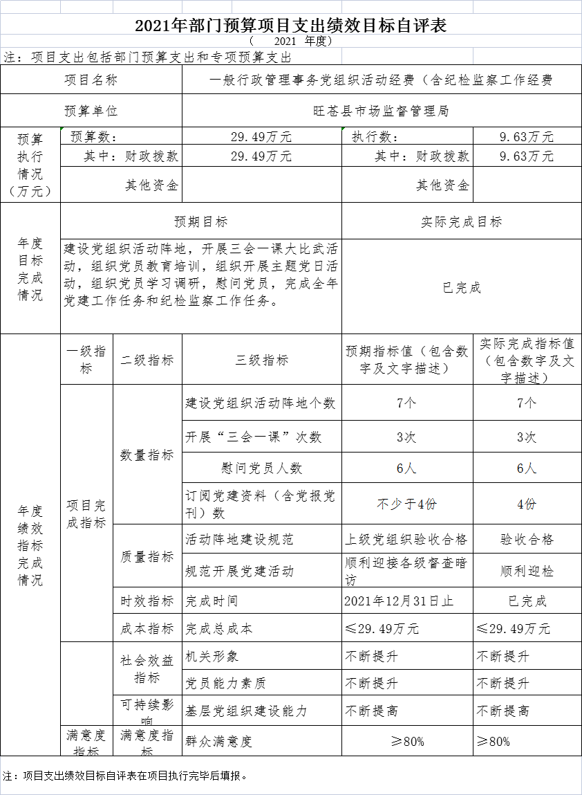 2021年一般行政管理党组织活动经费支出绩效自评报告