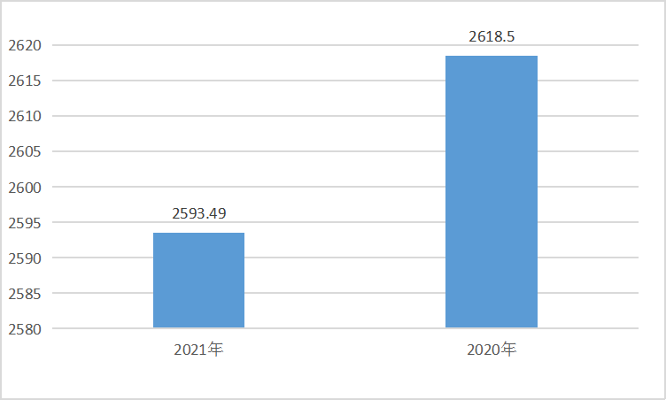 2021年财政拨款收、支总计2593.49万元。与2020年相比,财政拨款收、支总计减少25.01万元,下降0.96%。主要变动原因是2021年人员退休,人员经费减少以及厉行节约,压减各项费用支出。
