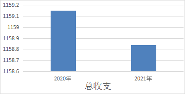 2021年度收、支总计1158.84万元。与2020年1159.15相比,收、支总计各减少0.31万元,下降0%。主要变动原因是执行三公经费压缩。