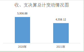 2021年度收、支总计4558.12万元。与2020年相比,收、支总计各减少1378.76万元,下降23.22%。主要变动原因是2020年新增了广元市旺苍县城市污水处理厂改扩建项目资金2750万元,2021年新增项目资金只有城乡垃圾处理设施建设194.05万元;另县财政追减了2017年空气环境质量激励剩余资金22.14万元、生活垃圾转运体系建设项目资金247.22万元、城镇污水处理设施建设PPP项目资金764.3万元,共计追减项目资金1033.66万元。