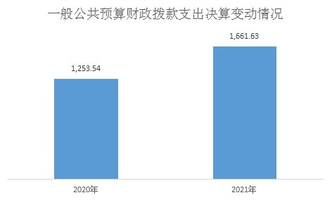 2021年一般公共预算财政拨款支出1661.63万元,占本年支出合计的88.4%。与2020年相比,一般公共预算财政拨款支出增加408.09万元,增长32.56%。主要变动原因是抑尘车采购项目55.34万元,县城市污水处理厂改扩建项目资金395.5万元在2021年支出。