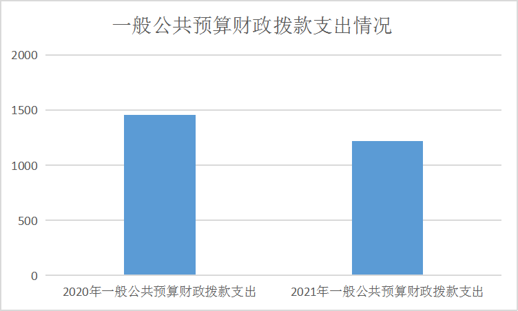 2021年一般公共预算财政拨款支出1218.35万元,占本年支出合计的91.27%。与2020年相比,一般公共预算财政拨款支出减少237.17万元,下降19.47%。主要变动原因是本年部分一般公共预算财政拨款支出未纳入预算安排形成。