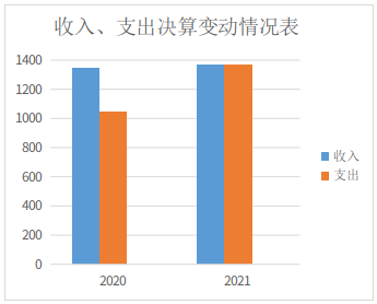 2021年度收入总计1373.56万元, 与2020年相比,收入增加21.38万元,增加1.58%。主要变动原因是人员工资变动。2021年支出总计1373.56万元,与2020年相比,支出增加320.03万元,增长30.38%。主要变动原因是人员工资变动。