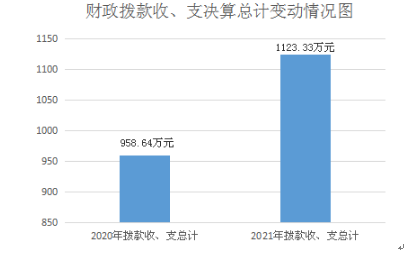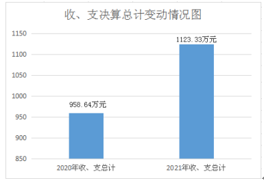 2021年度收、支总计1123.33万元。与2020年相比,收、支总计增加164.69万元,增长17.18%。主要变动原因是上年结转,机构改革上级单位下划乡镇人数、经费增加,部分项目增加,收入支出上升。