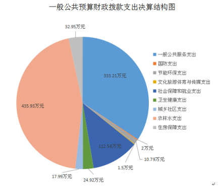2021年一般公共预算财政拨款支出971.87万元,主要用于以下方面:一般公共服务支出333.21万元,占34.29%;国防支出2万元,占0.2%;节能环保支出10.79万元,占1.11%;文化旅游体育与传媒支出1.5万元,占0.15%;社会保障和就业支出112.58万元,占11.58%;卫生健康支出24.92万元,占2.56%;城乡社区支出17.99万元,占1.85%;农林水支出435.93万元,占44.85%;住房保障支出32.95万元,占3.39%。