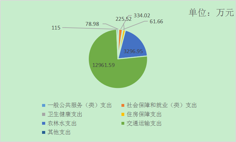 2021年一般公共预算财政拨款支出17073.72万元,主要用于以下方面:一般公共服务(类)支出78.98万元,占0.56%;社会保障和就业(类)支出334.02万元,占2.37%;卫生健康支出61.66万元,占0.44%;住房保障支出225.52万元,占1.69%;农林水支出3296.95万元,占2.11%;交通运输支出12961.59万元,占92.01%,其他支出115万元,占0.82%