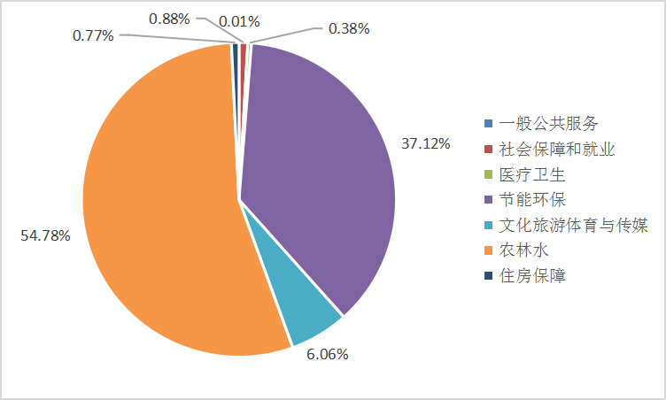 2021年一般公共预算财政拨款支出12921.46万元,主要用于以下方面:一般公共服务(类)支出1.7万元,占0.01%;文化旅游体育与传媒(类)支出782.89万元,占6.06%;社会保障和就业(类)支出113.72万元,占0.88%;卫生健康支出49.16万元,占0.38%;节能环保(类)支出4796.22万元,占37.%;农林水(类)支出7078.43万元,占54.78%住房保障支出99.35万元,占0.77%。