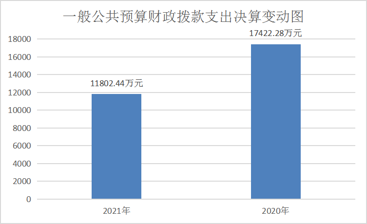 2021年一般公共预算财政拨款支出11802.44万元,占本年支出合计的100%。与2020年相比,一般公共预算财政拨款支出减少5619.84万元,下降32.26%。主要变动原因一是2021年乡(镇)人力资源和社会保障服务所机构划转到乡(镇),人员整体划转到乡(镇),减少97的人员经费及人头工作经费预算;二是三支一扶人员减少;三是行政单位离退休费支出减少。