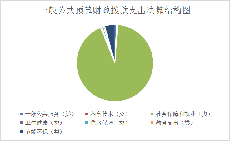 2021年一般公共预算财政拨款支出11802.44万元,主要用于以下方面:一般公共服务(类)支出88.90万元,占0.75%;教育支出(类)支出71.31万元,占0.60%;科学技术(类)支出45.67万元,占0.39%;社会保障和就业(类)支出10953.04万元,占92.80%;卫生健康(类)支出54.72万元,占0.46%;卫节能环保(类)支出507.00万元,占4.30%;住房保障(类)支出81.8万元,占0.69%。