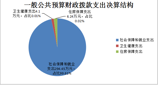 2021年一般公共预算财政拨款支出304.78万元,主要用于以下方面:社会保障和就业(类)支出294.45万元,占96.61%;卫生健康(类)支出4.1万元,占0.01%;住房保障(类)支出6.24万元,占0.02%。