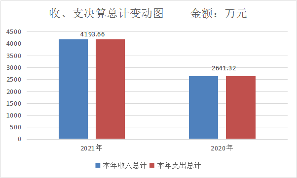 2021年度收、支总计4193.66万元。与2020年相比,收、支总计各增加1552.34万元,增长59%。主要变动原因一是新招录1名参公干部,公用经费就相应的增加;二是其他就业补助资金支出增多;三是新增了工业企业结构调整奖补资金。