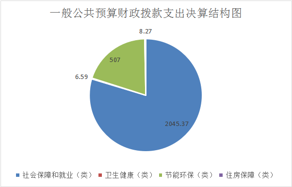 2021年一般公共预算财政拨款支出2,567.68万元,主要用于以下方面:社会保障和就业(类)支出2,045.37万元,占79.66%;卫生健康(类)支出6.59万元,占0.26%;节能环保(类)支出507.00万元,占19.74%;住房保障(类)支出8.27万元,占0.34%;。