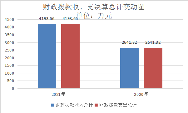 2021年财政拨款收、支总计4193.66万元。与2020年相比,财政拨款收、支总计各增加1552.34万元,增长59%。主要变动原因一是新招录1名参公干部,公用经费就相应的增加;二是其他就业补助资金支出增多;三是新增了工业企业结构调整奖补资金。